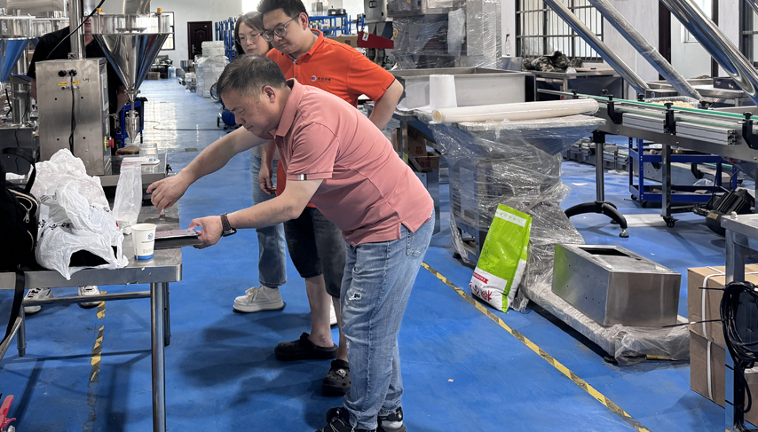 商丘客戶兩臺花生包裝機調(diào)試現(xiàn)場